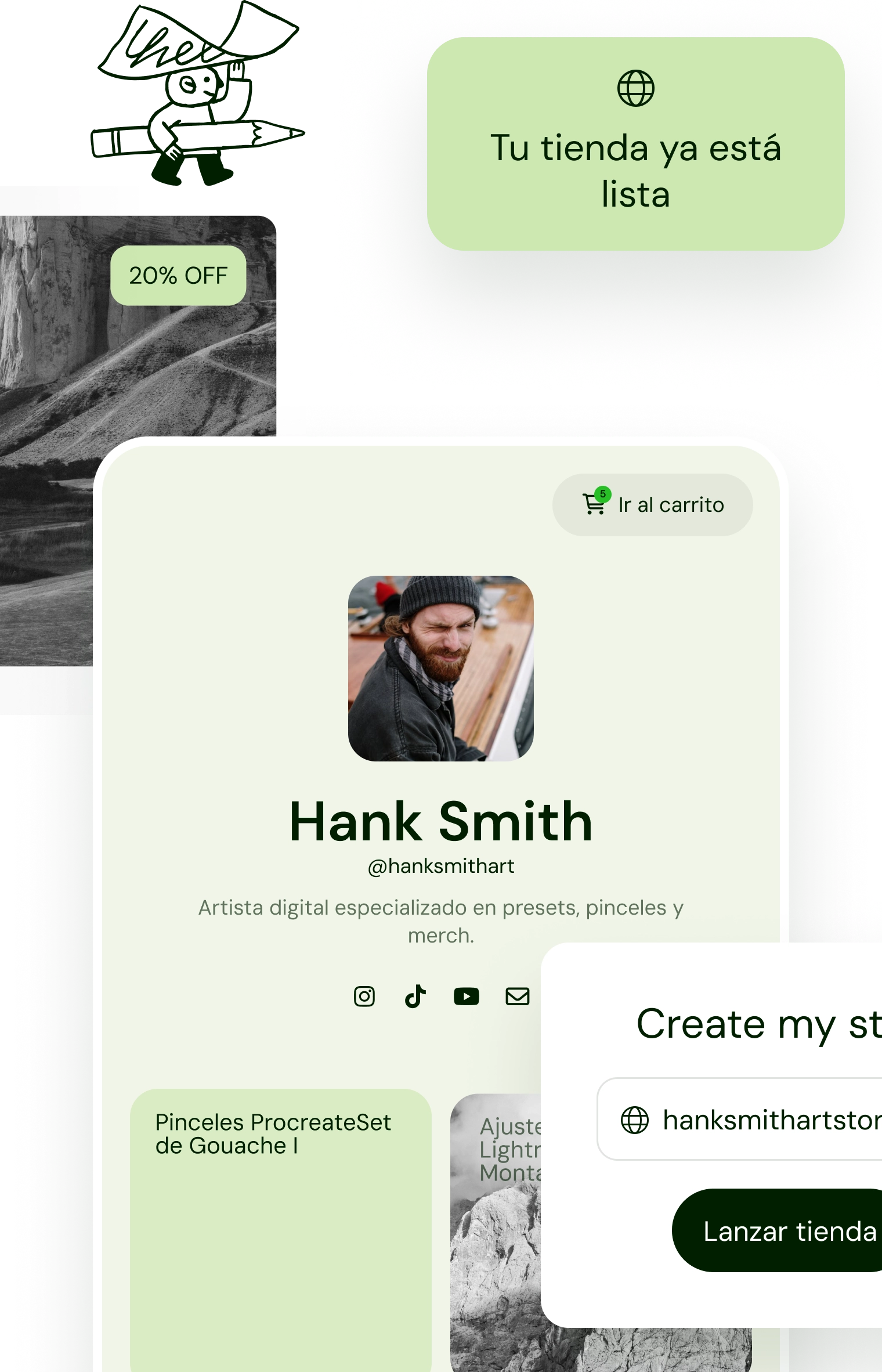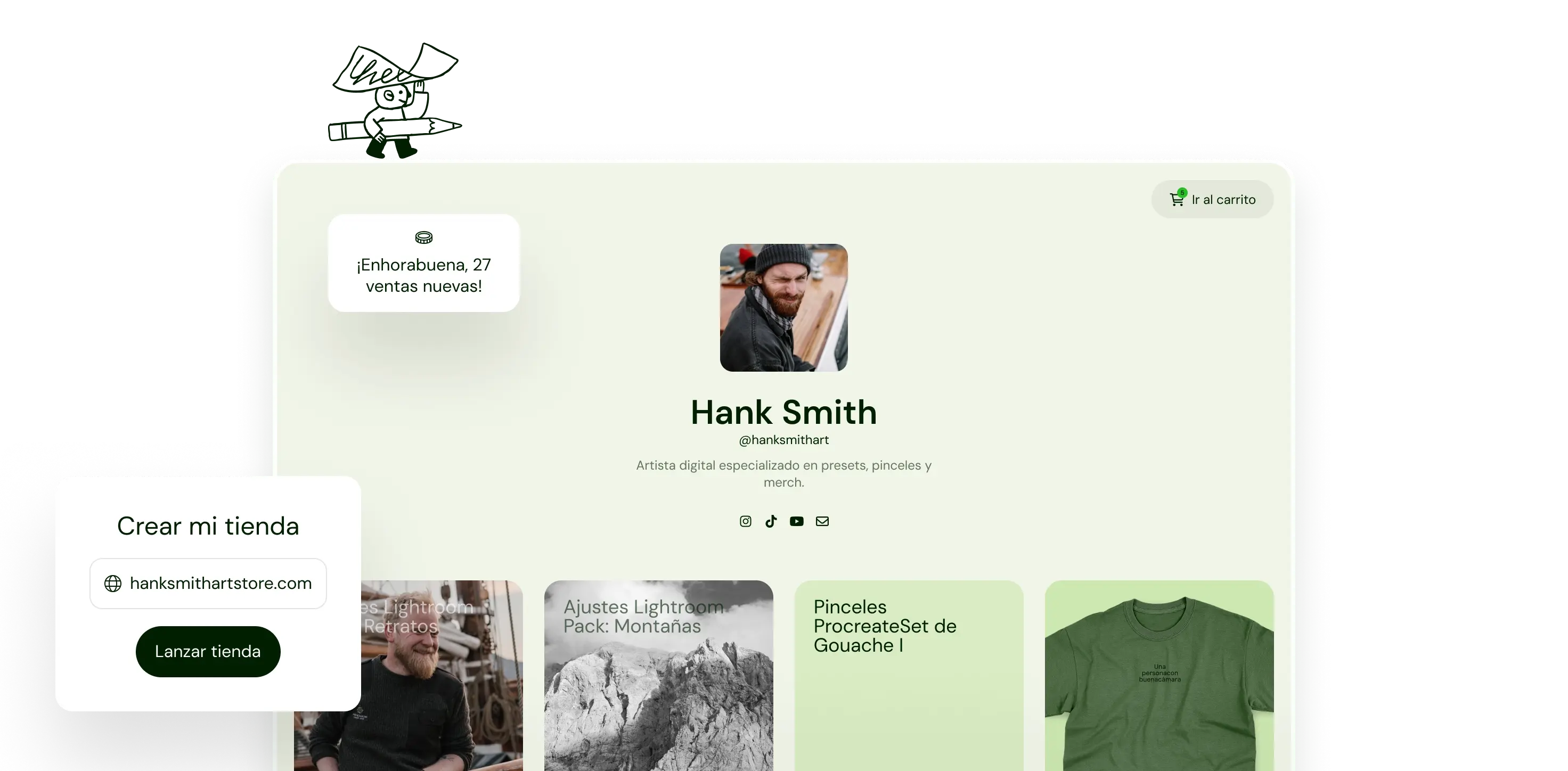 Únete a los 75 000 creadores que han ganado $165M vendiendo online sin comisiones.