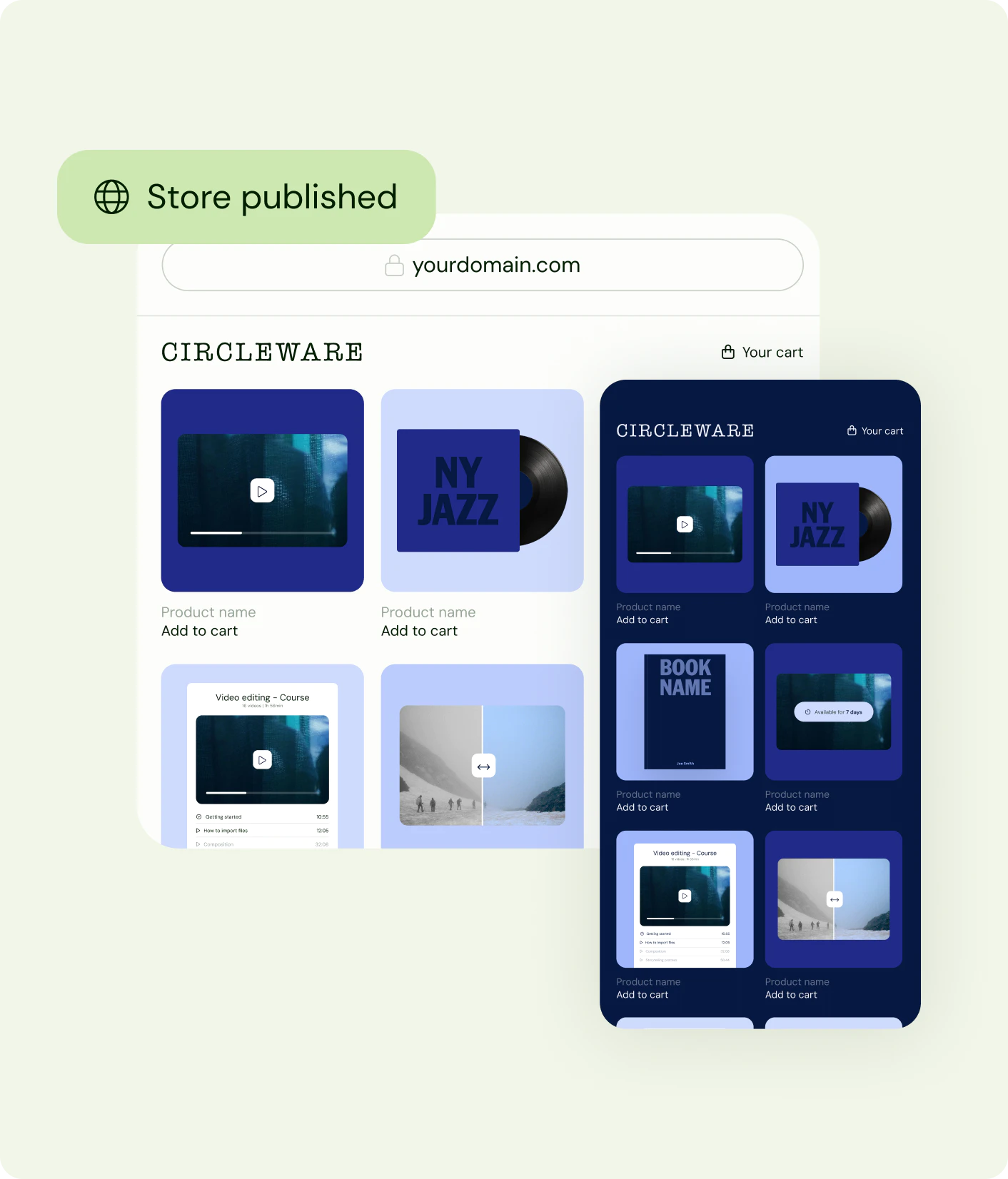 As many as you want! There are no limits to the number of products you can sell on Sellfy. You can upload single files, or bundle up to 50 files in one product. Each file can be up to 20GB in size. Got something bigger? No worries. You can compress your files into a ZIP folder before uploading.