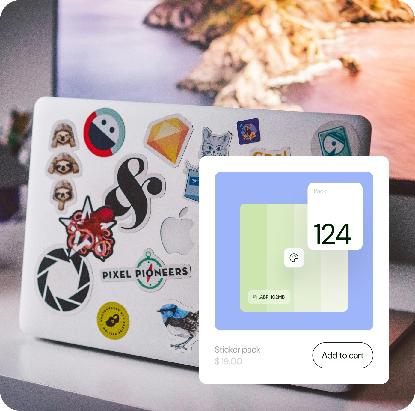 Sell sticker designs as downloadable files. Your fans can print them or use them as digital stickers.